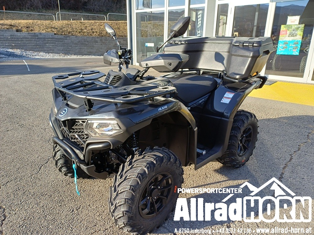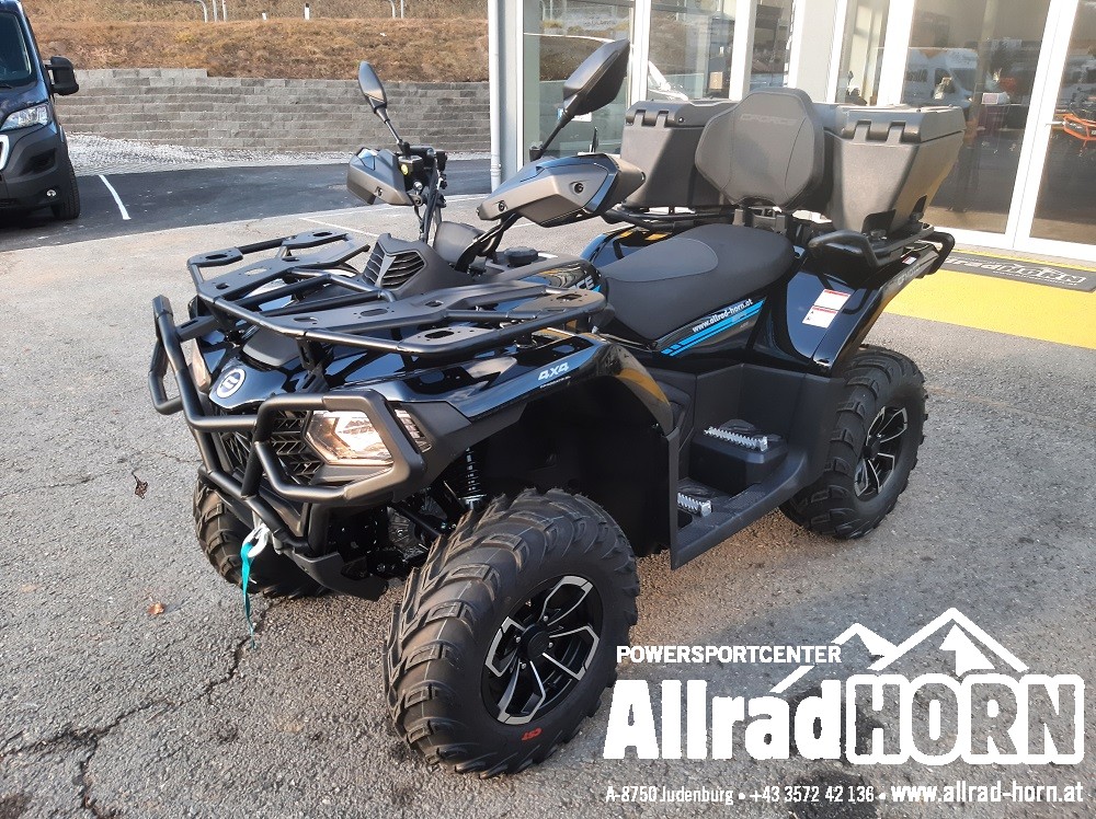 Neufahrzeug! CF Moto CForce 520 L ABS, mit T3b Straßenzulassung, Farbe: nebula black, CF-Einzylinder-Motor mit 495 ccm und 38 PS, V-Max: 90 km/h, CVT-Getriebe, Allradantrieb, Untersetzung und Differenzialsperren vorne und hinten zuschaltbar, EPS dynamische Servolenkung, ABS, 12 Zoll Aluminiumfelgen mit 25er Bereifung, Seilwinde vorne mit 1.580 kg Zugkraft, Handschutz, Anhängevorrichtung mit 7poliger Steckdose, LED Beleuchtung vorne und hinten, LCD Display, 1 oder 2 zeiliges Kennzeichen, Doppelsitzer, inkl. Rammschutz vorne und hinten uvm.