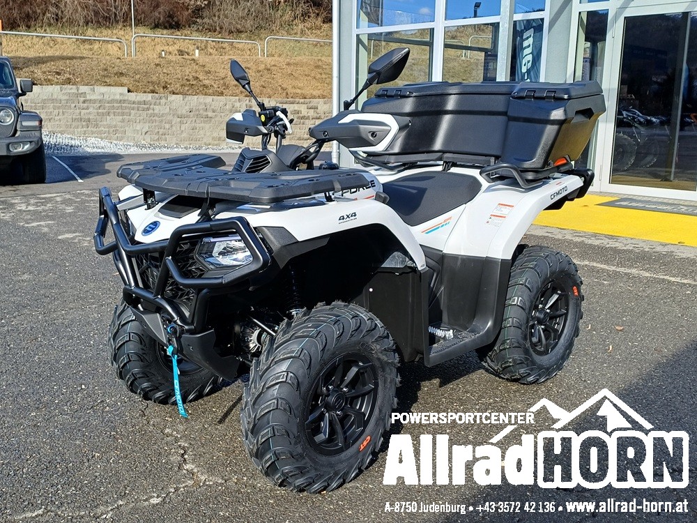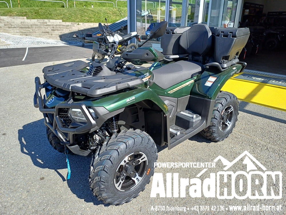 Neufahrzeug! CF Moto CForce 520 L ABS, mit T3b Straßenzulassung, Farbe: Forest green, CF-Einzylinder-Motor mit 495 ccm und 38 PS, V-Max: 90 km/h, CVT-Getriebe, Allradantrieb, Untersetzung und Differenzialsperren vorne und hinten zuschaltbar, EPS dynamische Servolenkung, ABS, 12 Zoll Aluminiumfelgen mit 25er Bereifung, Seilwinde vorne mit 1.580 kg Zugkraft, Handschutz, Anhängevorrichtung mit 7poliger Steckdose, LED Beleuchtung vorne und hinten, LCD Display, 1 oder 2 zeiliges Kennzeichen, Doppelsitzer, inkl. Rammschutz vorne und hinten uvm.