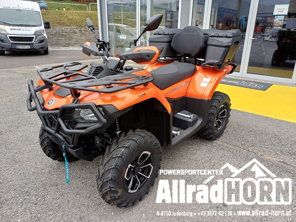 Neufahrzeug! CF Moto CForce 450 L ABS, mit T3b Straßenzulassung, Farbe: Lava Orange, CF Motor mit 400 ccm und 33 PS, V-max 90 KM/H; CVT-Getriebe, Allradantrieb, Untersetzung und Differenzialsperren vorne und hinten zuschaltbar, EPS dynamische Servolenkung, ABS, 12 Zoll Aluminiumfelgen mit 25er Bereifung, Seilwinde vorne mit 1.134 kg Zugkraft, Synthetikseil; Handschutz; AHV mit Steckdose, LED Beleuchtung hinten; LCD Display ; USB; 1 oder 2 zeiliges Kennzeichen; Doppelsitzer, inkl. Rammschutz vorne und hinten uvm.