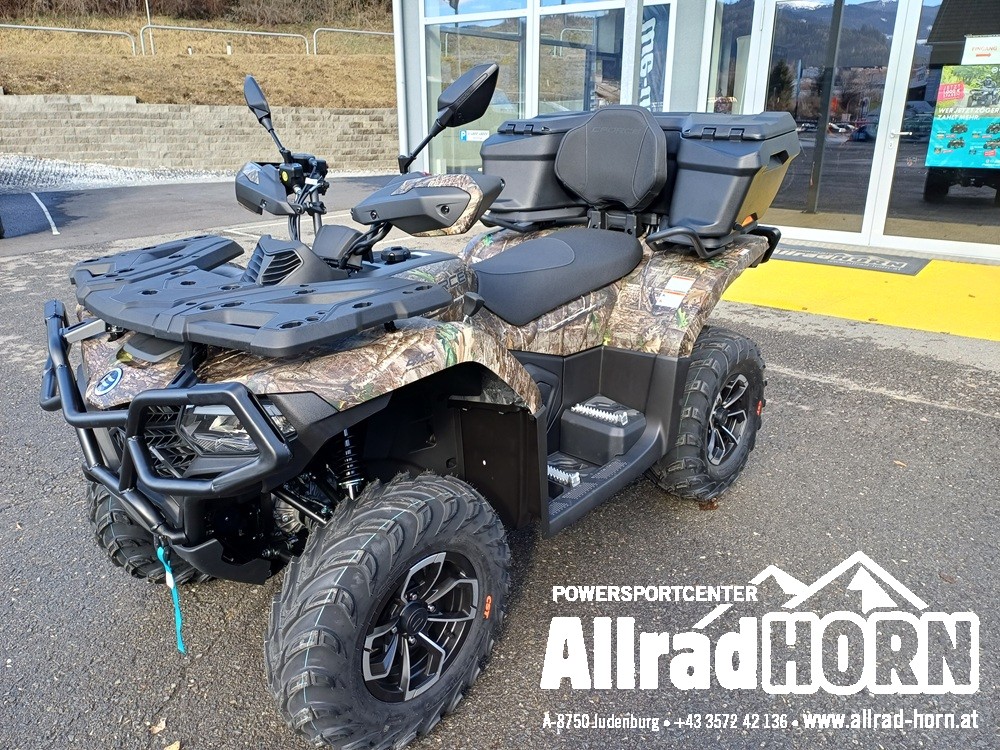 Neufahrzeug! CF Moto CForce 625 Touring ABS, mit T3b Straßenzulassung, Farbe: True Timber Camo, CF 1 Zylindermotor mit 580 ccm und 45 PS, V-MAX 95 KM/H; CVT-Getriebe, Allradantrieb, Untersetzung und Differenzialsperren vorne und hinten zuschaltbar, EPS dynamische Servolenkung, ABS, 14 Zoll Aluminiumgussfelgen schwarz mit 26er Bereifung, lackierter Kunststoff für hochwertige Optik, Seilwinde vorne mit 1.580 kg Zugkraft, Synthetikseil; Handschutz Kotflügelverbreiterungen vorne und hinten, AHV mit Steckdose, LED Beleuchtung hinten und vorne; LCD Display ; USB Anschluß; 1 oder 2 zeiliges Kennzeichen; Doppelsitzer, Rammschutz vorne und hinten uvm.