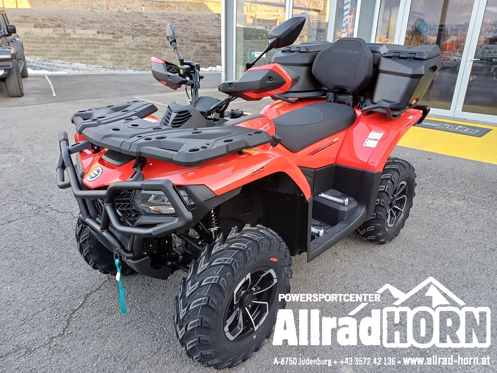 Neufahrzeug! CF Moto CForce 520 L ABS, mit T3b Straßenzulassung, Farbe: Magma Red, CF-Einzylinder-Motor mit 495 ccm und 38 PS, V-Max: 90 km/h, CVT-Getriebe, Allradantrieb, Untersetzung und Differenzialsperren vorne und hinten zuschaltbar, EPS dynamische Servolenkung, ABS, 12 Zoll Aluminiumfelgen mit 25er Bereifung, Seilwinde vorne mit 1.580 kg Zugkraft, Handschutz, Anhängevorrichtung mit 7poliger Steckdose, LED Beleuchtung vorne und hinten, LCD Display, 1 oder 2 zeiliges Kennzeichen, Doppelsitzer, inkl. Rammschutz vorne und hinten uvm.