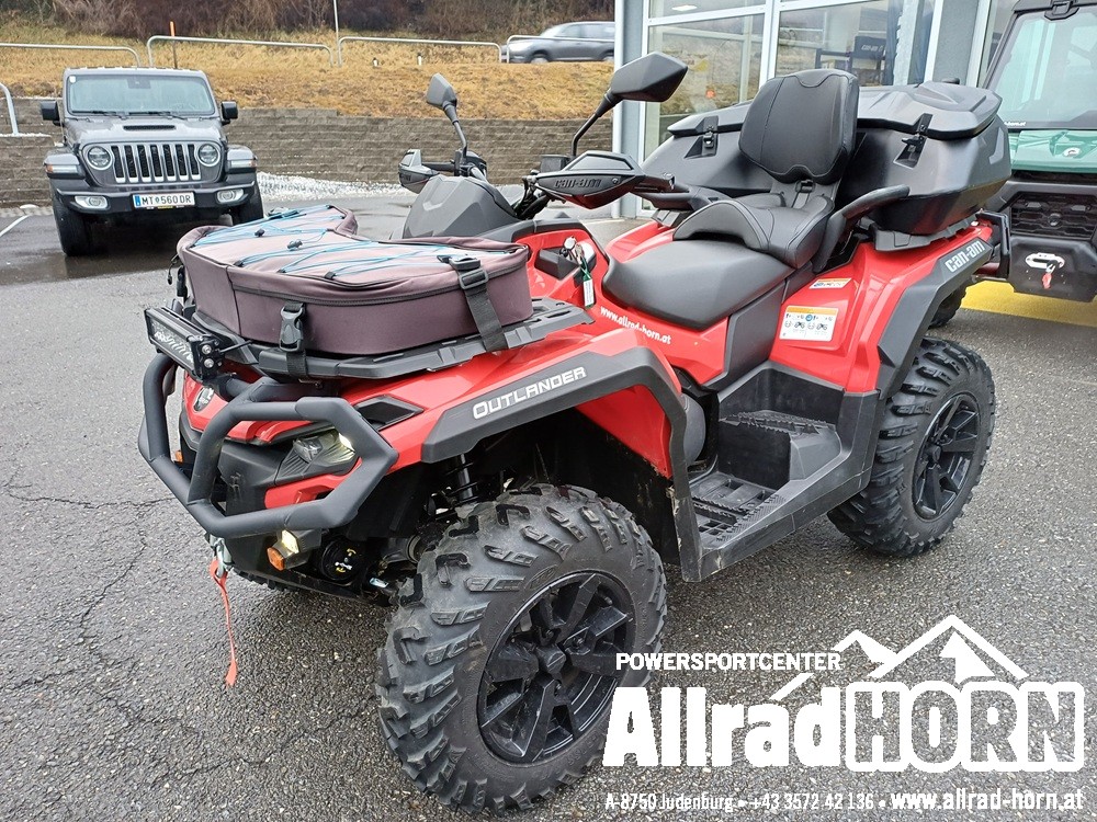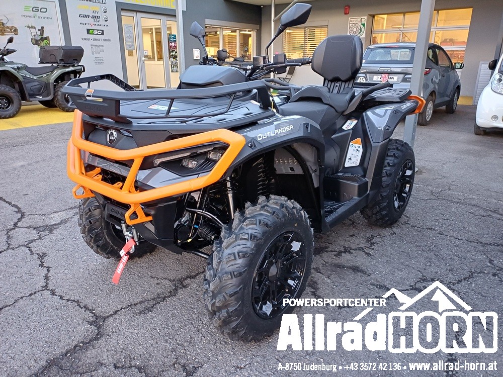 Vorführfahrzeug Can-am Outlander Max 1000 DPS, mit T3b Straßenzulassung; 8-2025 ; 400 KM ; 2-Zylinder-Rotax-DOHC-Motor mit 999 ccm und 101 PS Leistung, V-Max: 125 km/h!, Farbe: Granite Grey, dreistufige dynamische Servolenkung (DPS), Visco Frontdifferenzial mit ABS, intelligente Motorbremse (iEB) mit Fahrmodischalter, 26 Zoll XPS Trail King2 Bereifung auf 14 Zoll Alufelgen schwarz, 7,6 Zoll breite Digitalanzeige, durchgehender Unterbodenschutz, NEU! LED-Signaturleuchten, Staufach bei Sitz mit USB-Ladegerät, Staukasten vorne, abnehmbares Staufach hinten, Sitz in Sonderausführung, Anhängekupplung mit 7-poliger Steckdose (NEU! Anhängelast 830 kg!), LED-Scheinwerfer und Schlussleuchten, Doppelsitzer, uvm.