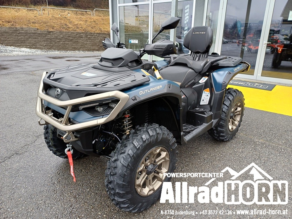 Ausstellungsfahrzeug ! Can-am Outlander Max Limited 1000, mit T3b ABS Straßenzulassung, Farbe: Dusty Navy, 2-Zylinder-Rotax-Motor mit 999 ccm und 101 PS, dreistufige dynamische Servolenkung, ABS, 14 Zoll Alufelgen mit 27er XPS Trail King2 Bereifung, Rammschutz vorne und hinten, lackierter Kunststoff für hochwertige Optik, Seilwinde vorne, CVT-Getriebe, Allradantrieb und Untersetzung zuschaltbar, Kotflügelverbreiterungen vorne und hinten, abnehmbare Anhängevor-richtung mit 7poliger Steckdose, Doppelsitzer, LED-Scheinwerfer, Fahrwerk vorne und hinten mit Smart-Shox-Technologie, Visco-4Lok Frontdifferenzial, 10,25 Zoll Touchscreen-Display, durchgehender Unterbodenschutz, Querstabilisator vorne, Telefonfach mit USB-Ladeanschluss, Staufach vorne, abnehmbares Staufach hinten, V-Max: 125 km/h, uvm.