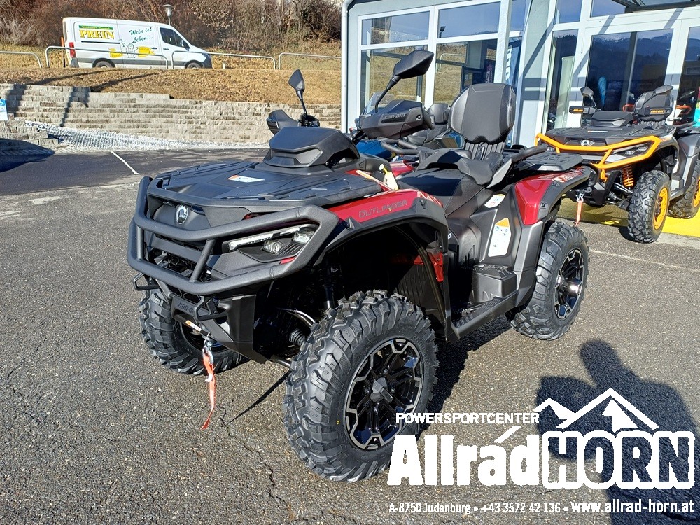 NEUFAHRZEUG! Can-am Outlander MAX 700 DPS, mit T3b Straßenzulassung, Farbe: Legion Red, 1-Zylinder-Rotax-ACE-Motor mit 650 ccm und 50 PS, iTC – intelligente Drosselklappensteuerung mit elektronischer Kraftstoffeinspritzung, CVT-Getriebe mit p-Drive Primärkupplung, Allrad und Untersetzung zuschaltbar, dynamische Servolenkung (DPS), V-Max: 105 km/h, 12 Zoll Alufelgen mit 25er Bereifung, durchgehender Unterbodenschutz, Handschuhfach, LED-Scheinwerfer und Rückleuchten, Anhängevorrichtung mit 7poliger Steckdose, RF-Schlüssel mit D.E.S.S Sicherheitssystem, Gepäckträger vorne und hinten, Doppelsitzer, Staufach vorne, uvm.